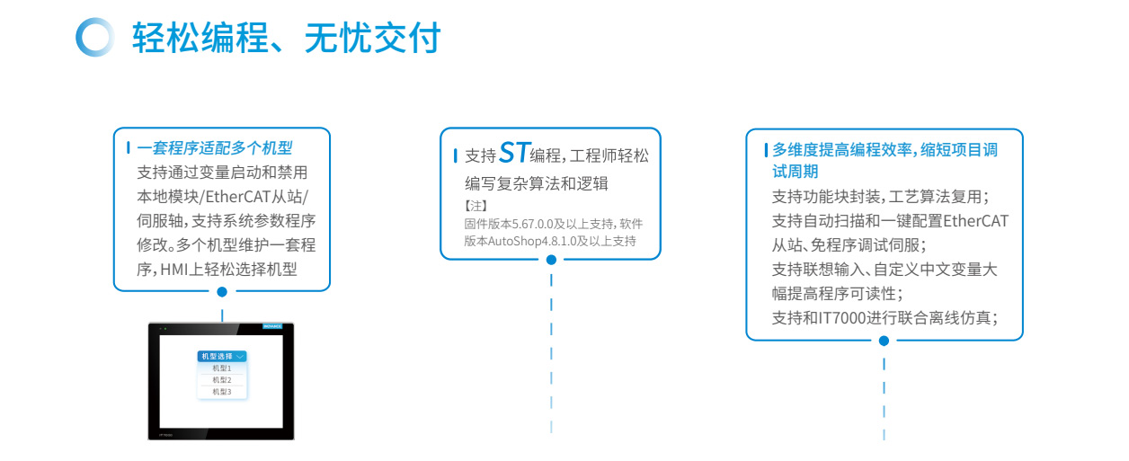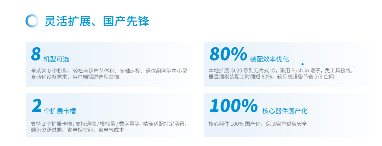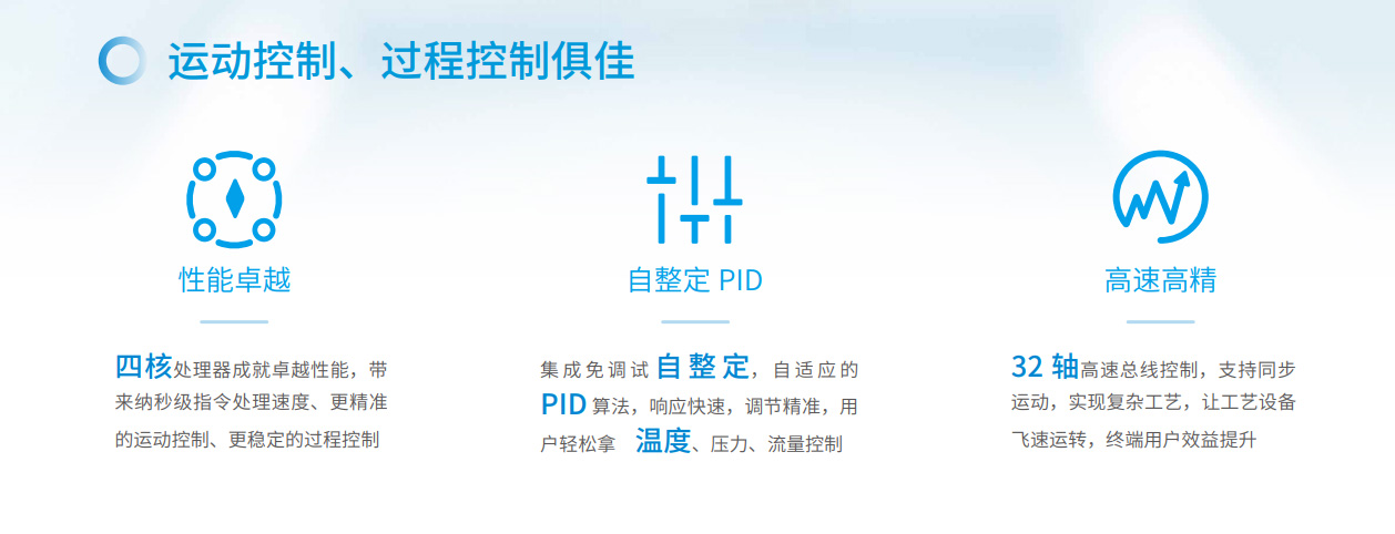 易實(shí)現(xiàn)運(yùn)動(dòng)控制、過程控制易選型、易擴(kuò)展易互聯(lián)、易組網(wǎng)易編程、模塊化易交付、100%核心器件國產(chǎn)化